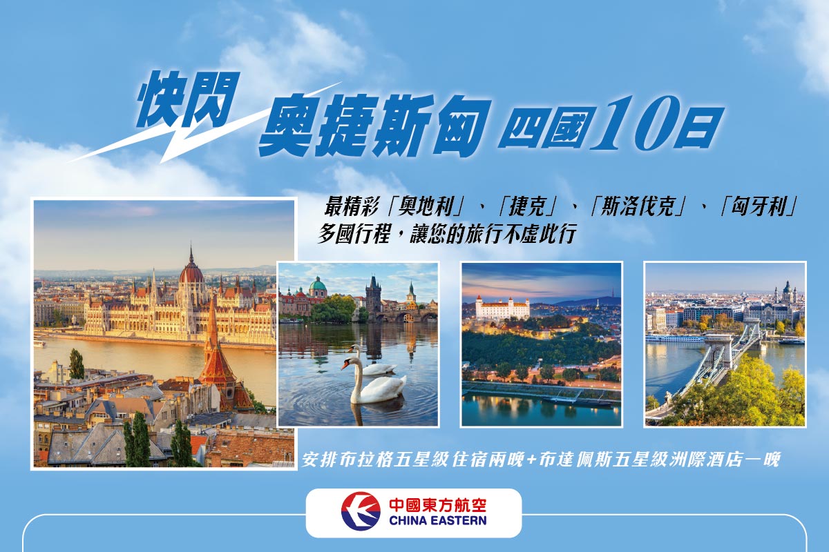 ★ 東歐金典路線| 奧地利、捷克、斯洛伐克、匈牙利四國一線暢遊,橫跨中歐文化核心,經典景點全收錄。