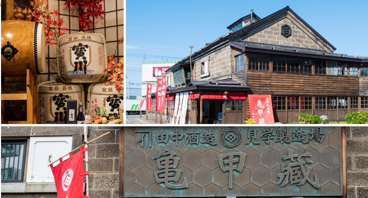 【田中酒造-龜甲藏】酒造所在的三棟倉庫建築物,舊稱為岡崎倉庫。原屬1877年出生於佐渡的「岡崎謙」先生所有,他後來到小樽經營米糧穀物與倉庫物流業的生意而致富。第一棟倉庫建於明治38年(1905年),第二、三棟建於1906年。