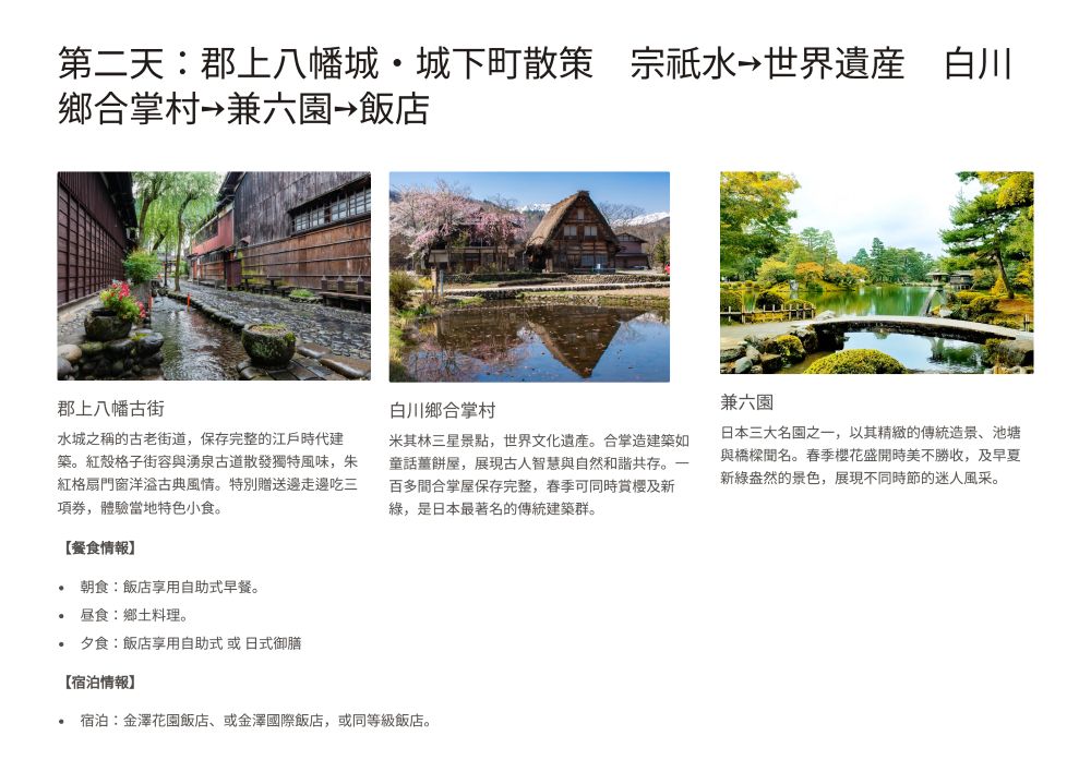 住宿:金澤花園飯店、或金澤國際飯店,或同等級飯店