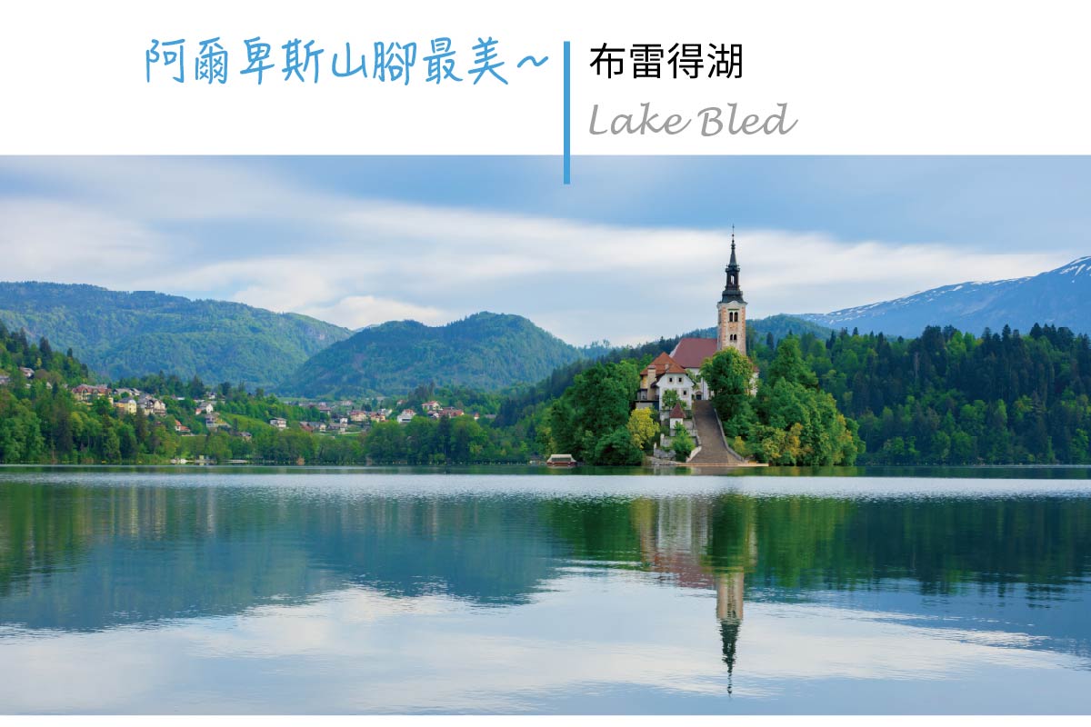 【布雷得湖】位在斯洛維尼亞西北部的阿爾卑斯山腳,由冰河消退後所形成的湖泊,是個小巧可愛,卻又五臟俱全的度假勝地。素有「藍湖」之稱的布雷得湖,夏季時祖母綠色的湖面,波光粼粼;冬季時特里格拉夫山頭覆蓋靄靄白雪,湖面上結成如薄紗般的冰層;秋季時印象畫家把油彩倒入了整座國家公園,蔚藍的湖水四周被群山所環抱,湖光映襯出山色,風景美得有如一幅圖畫。其風景秀麗,彷似世外桃源,從湖畔欣賞湖中小島,遠眺位於崖壁上的布雷德堡,為其添上幾分童話感覺,風塵僕僕的城市人來到這裡,必定陶醉於湖光山色之中,身心的疲累一掃而空。