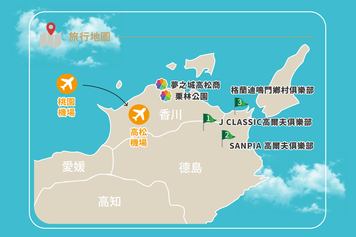 此行程是和塩江HYPER溫泉渡假村合作,由飯店負責第一天的舉牌接機,及第二三四天的球場至飯店的往返接送