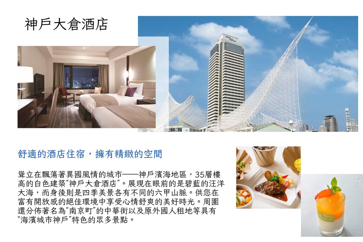 於桃園機場帶著期待的心情集合,快樂出發 抵達日本並由專車接機後,將直接送往飯店辦理入住手續。隨後您可以悠閒地展開神戶港散策,感受浪漫的海港氛圍與迷人夜景。