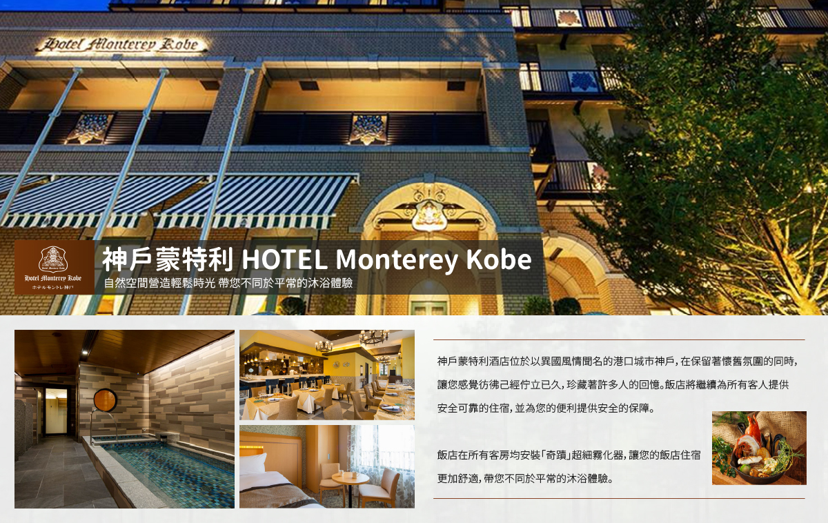 【神戶蒙特埃馬納艾美麗或 三宮大和Roynet PREMIER大酒店 或神戶蒙特利或同等級】